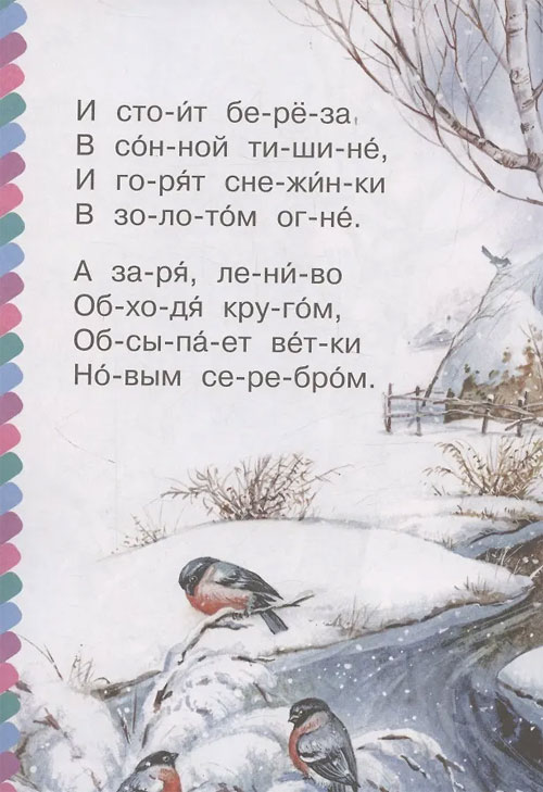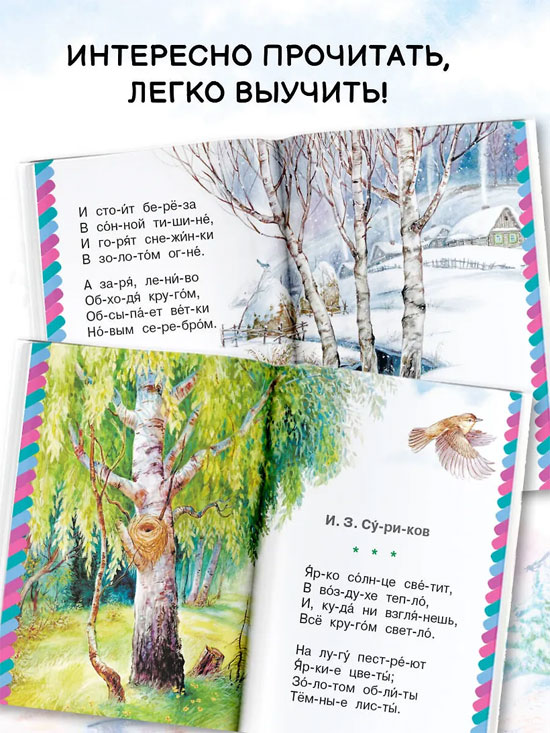 на слоги с ударениями. В этой серии собраны лучшие произведения классиков детской литературы — С. Маршака, С. Михалкова, Э. Успенского, Г. Остера, В. Сутеева и других знаменитых писателей и поэтов. Каждую книгу маленькие мальчики и девочки смогут прочитать САМИ от начала и до конца. А потом будут гордо говорить: «Вот мои первые прочитанные книжки. Хочу читать ещё!» В этой книге ребята прочитают трогательные стихи А. А. Фета, С. А. Есенина, С. Я. Маршака и других классиков отечественной литературы.