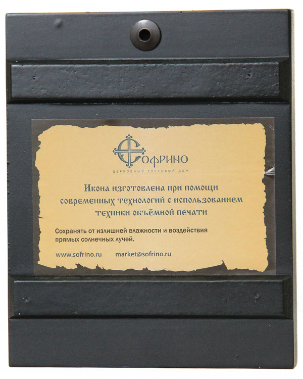 Икона на дереве, выполнена в технике объемной печати, покрыта лаком.