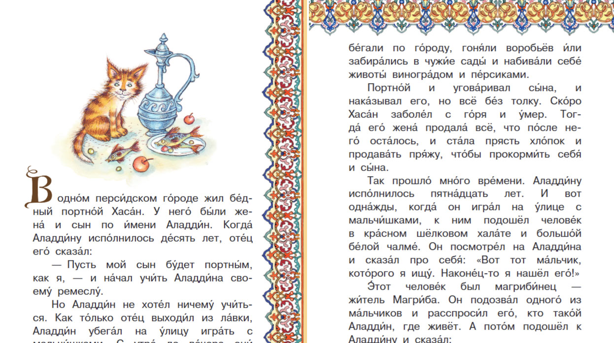 В этой книге представлена известная арабская сказка «Аладдин и волшебная лампа», адаптированная специально для детей востоковедом М.А. Салье. Она станет первой книгой, которую ваш малыш сможет прочитать целиком сам. Увлекательный сюжет, передающий уникальный характер восточных сказок, станет отличным подспорьем для развития фантазии вашего ребёнка, позволит ему расширить свой словарный запас. А крупные буквы и ударения помогут детям самостоятельно ознакомиться с произведением.