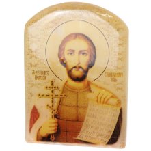 Икона настольная на подставке выполнена путем технологии фотопечати на камне под лаком.
