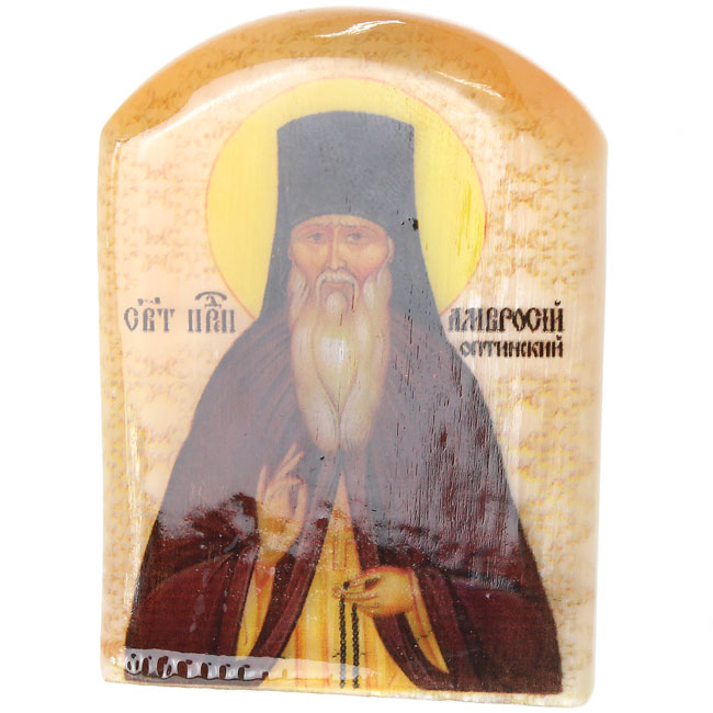 Амвросий Оптинский, икона настольная из селенита (45 х 30 х 65 мм, 65 г)