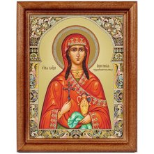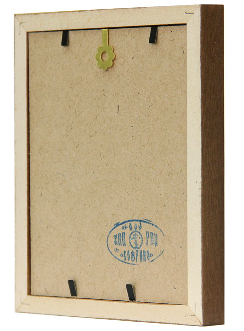 Икона в деревянной рамке под стеклом, выполнена в технике двойного тиснения.
