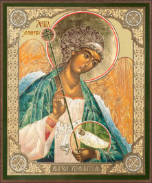 Икона на МДФ, выполненная в технике цветная полиграфия с золотым тиснением.