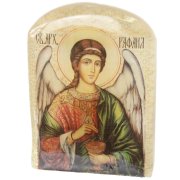 Икона на оргалите выполнена в технике литографии с двойным тиснением.