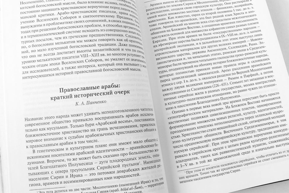 Антология, подготовленная под руководством профессора, доктора исторических наук К. А. Панченко, является результатом многолетней работы коллектива переводчиков и исследователей Христианского Востока. В отечественной науке остро ощущается дефицит переводов важнейших сочинений арабо-христианской литературы, и потому значение этой книги трудно переоценить. Она на высоком научном уровне решает давно назревшую задачу собрать воедино значимые сочинения православных арабов (мелькитов) и не только дает разностороннее представление об их письменном наследии и отражает те или иные аспекты их жизни, но и позволяет воспринимать их культуру как целостное и самобытное явление.