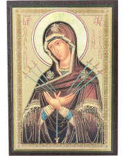 Сам образ без рамки небольшой: 4,9 см х 3,7 см. С ламинатом: 8,7 см х 5,4 см. Детали мелкие, но за счёт высокой контрастности четкие. Лучше, чем на фото. Без тиснения. Картон высокой плотности. Ламинат тонкий, гнется, но нигде не отходит, закруглен. Шрифт молитвы средний, удобный. "Августовская Победа" несёт знамение, победу, силу духа, веру, надежду, радость, воодушевление, умиление, покровительство, защиту, возвращение, отражение, обращение вспять врагов видимых и невидимых, зла, хранит христиан от расхищения, вреда, безвыходности. Дата празднования не указана – 1/14 сентября.