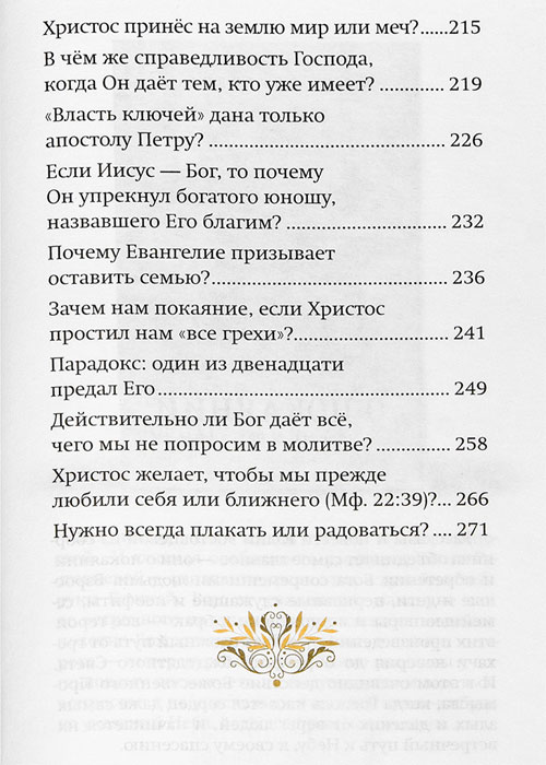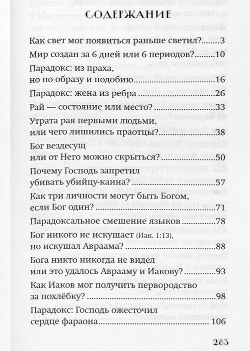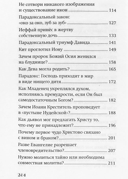 «Как три Личности могут быть одним Богом?», «Почему Иеффай принёс в жертву собственную дочь?», «Отчего Господь ожесточил сердце фараона?», «Как кит мог проглотить Иону?» — эти и другие немаловажные вопросы получают своё освещение в этой книге. Многое автор объясняет примерами из классической литературы и жизни, чтобы в премудрости слова не упразднить главного.