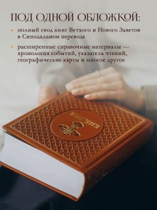 Полная Библия в русском Синодальном переводе. 50 книг Ветхого Завета и 27 книг Нового Завета. С указателем евангельских и апостольских церковных чтений, последовательностью евангельских событий по четырем евангелистам, последовательностью событий по книге Деяний святых апостолов, картами и другими приложениями. Перевод имеет высокий авторитет и широко используется не только в православной Церкви, но и в других христианских конфессиях, использующих русский язык для проповеди. Эксклюзивное оформление в экокоже.