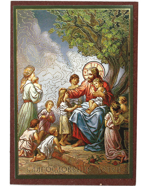 Благословение детей икона на МДФ (6,3 х 9 см)