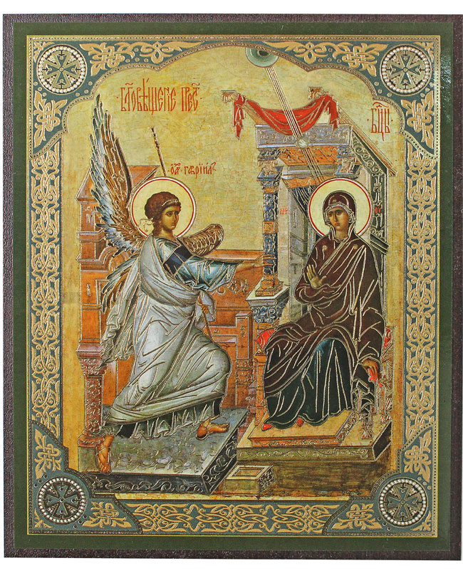 Икона на МДФ, выполненная в технике цветная полиграфия с золотым тиснением.