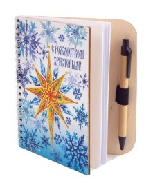 Блокнот выполнен из высококачественной фанеры, содержит блок для записей объемом 40 листов без разлиновки. В комплект входит шариковая ручка.