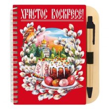 Блокнот-скетчбук деревянный с ручкой «Христос Воскресе!»