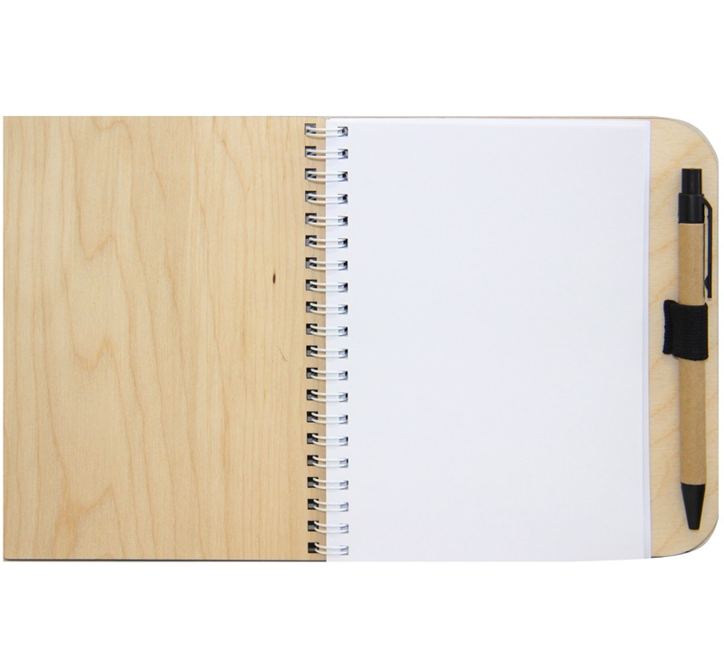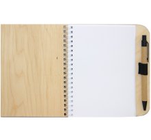 Блокнот выполнен из высококачественной фанеры, содержит блок для записей объемом 40 листов без разлиновки. В комплект входит шариковая ручка.