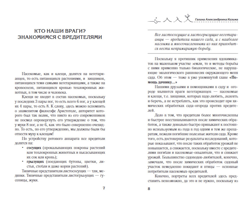 Галина Кизима, садовод с более чем полувековым опытом, научит вас распознавать у растений признаки болезней и следы появления вредителей, подскажет, как не навредить полезным микроорганизмам, заботящимся о плодородии почвы, и привлечь полезных насекомых, чтобы они вели борьбу с врагами урожая за вас.