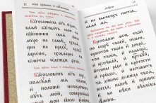 Служебник карманного формата в твердом переплете с блинтовым тиснением и с тиснением золотой фольгой включает чинопоследование Божественной Литургии святителя Иоанна Златоустого. Помимо этого, в издание вошли последования служб на различные потребы, чин исповедания, дополнительные прошения и прочие молитвы. Текст книги напечатан в два цвета церковно-славянским шрифтом на качественной офсетной бумаге, украшен изящными заставками. При этом слова священника набраны более крупным шрифтом, слова диакона — несколько меньшим, а слова чтеца, хора и комментарии — еще меньшим. Для удобства читателя книга снабжена двумя разноцветными ленточками-закладками.