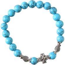 Браслет 20 зерен из камня бирюза (с крестом и рыбками)