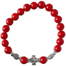 Браслет 20 зерен из камня коралл (с крестом и рыбками)