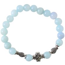 Браслет 20 зерен из камня агат (с крестом и рыбками)