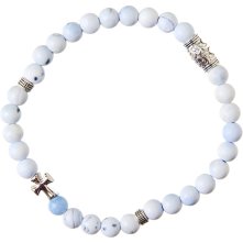 Браслет 30 звеньев из прессованного камня небесно-голубой агат, на резинке с металлическим крестом. В браслет вставлен Псалом 90 «Живый в помощи Вышняго».