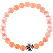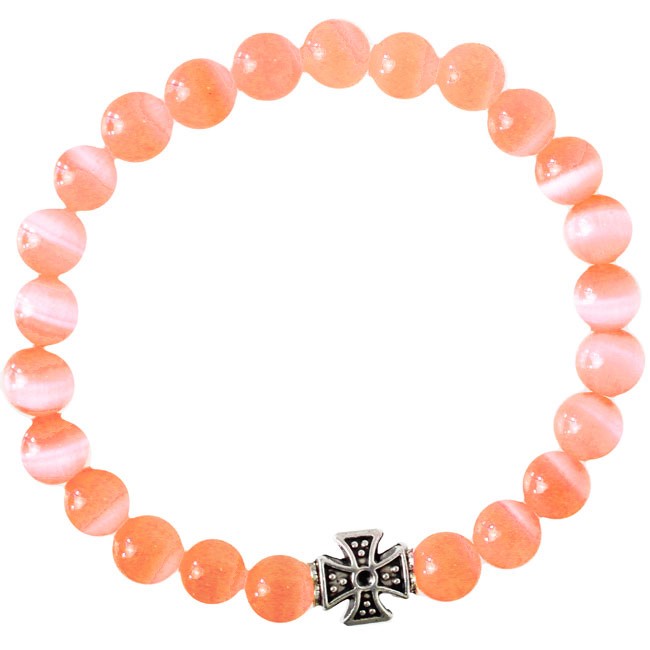Браслет 23-24 звена из камня кошачий глаз с крестом (d = 8 мм)