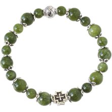 Чётки-браслет 20 зёрен из камня агат моховый, на резинке с крестом. В браслет вставлена молитва Псалом 90 Живый в помощи Вышняго.
