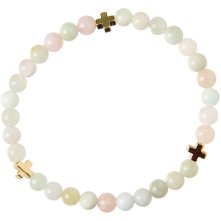 Браслет из натурального камня берилл, 30 бусин на резинке с крестом.
