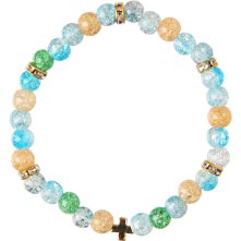 Браслет из камня кварц цветной сахарный с крестом, 30 звеньев