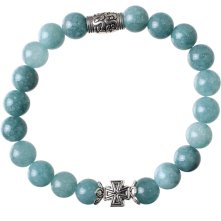 Браслет из камня кварц серый с крестом, 20 звеньев