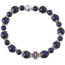 Браслет из камня авантюрин синий с крестом, 20 звеньев