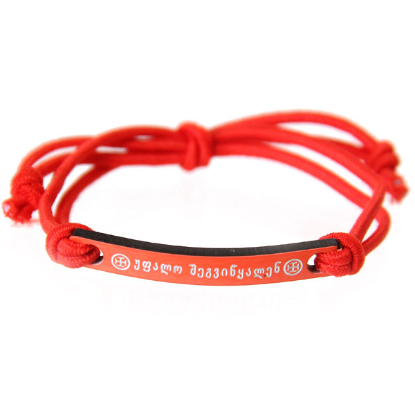 Браслет с надписью «Господи помилуй» на грузинском языке. Вставка из пластмассы, резинка. Размер регулируется.