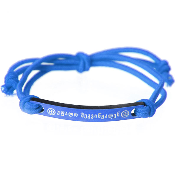Браслет с надписью «Господи помилуй» на грузинском языке. Вставка из пластмассы, резинка. Размер регулируется.