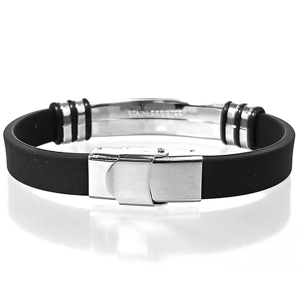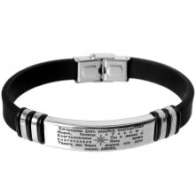 Браслет силиконовый с узкой гравировкой «Богородице Дево, радуйся...», черный. Размер регулируется (10-20 см).