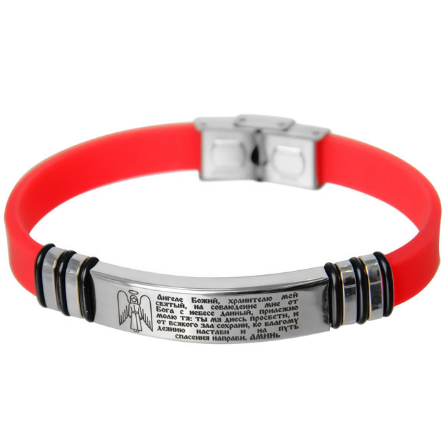 Браслет силиконовый с молитвой, гравировка, металл