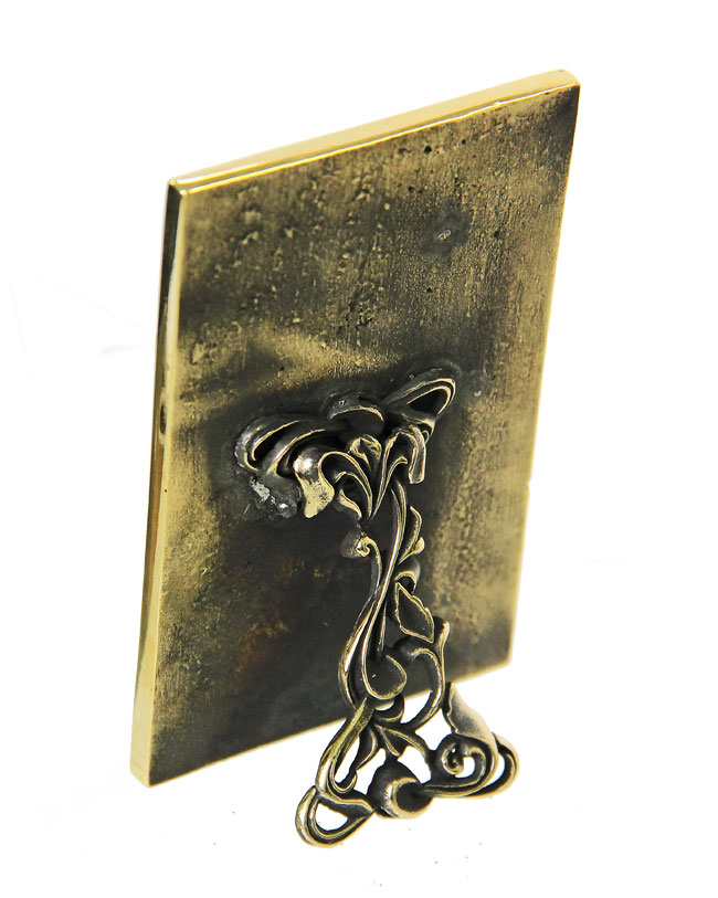 Икона ручной работы с подставкой, выполнена в технике литья, миниатюрный рельеф, чернение.