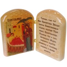 Целительница, икона двойная из селенита (6,5 х 9 см)
