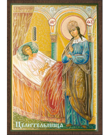 Икона на МДФ, выполненная в технике цветная полиграфия с золотым тиснением.