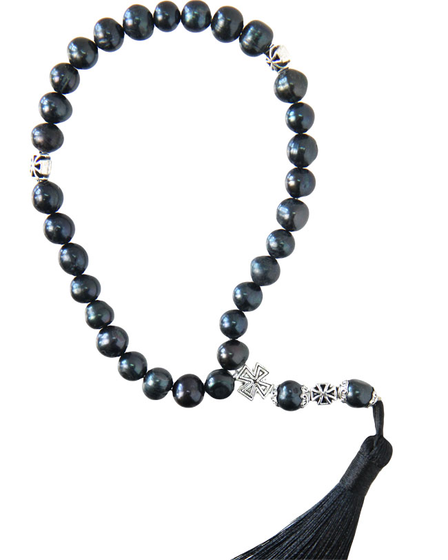 Православные четки из речного жемчуга с кисточкой на 30 бусин по 8 мм.