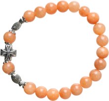 Кварц бледно-зеленый. Браслет-четки молочно-зеленого цвета, очень светлого, приятного для глаз. Браслет сделан аккуратно, бусины красиво сочетаются с рыбками. Сами бусины небольшие, поэтому браслет смотрится скромно, тоненько.