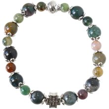 Чётки-браслет 20 зёрен из камня агат, на резинке с крестом. В браслет вставлена молитва Псалом 90 Живый в помощи Вышняго.