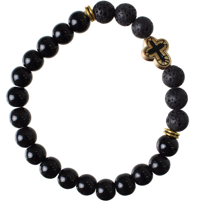 Четки-браслет 23 зерен из искусственного камня с крестом