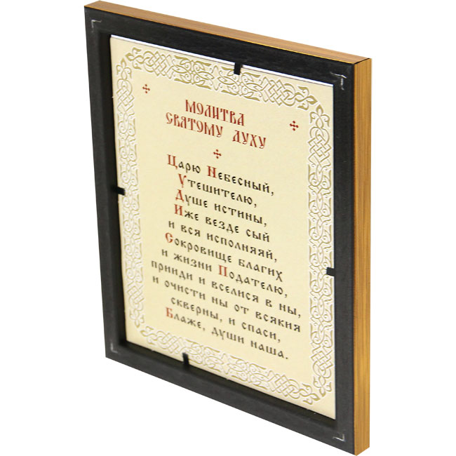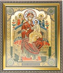 Икона изготовлена в технике цветная полиграфия с золотым тиснением, в багетной рамке, полистирольное стекло.