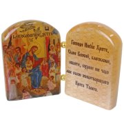 Икона двойная с молитвой, выполнена путем технологии фотопечати на камне под лаком.