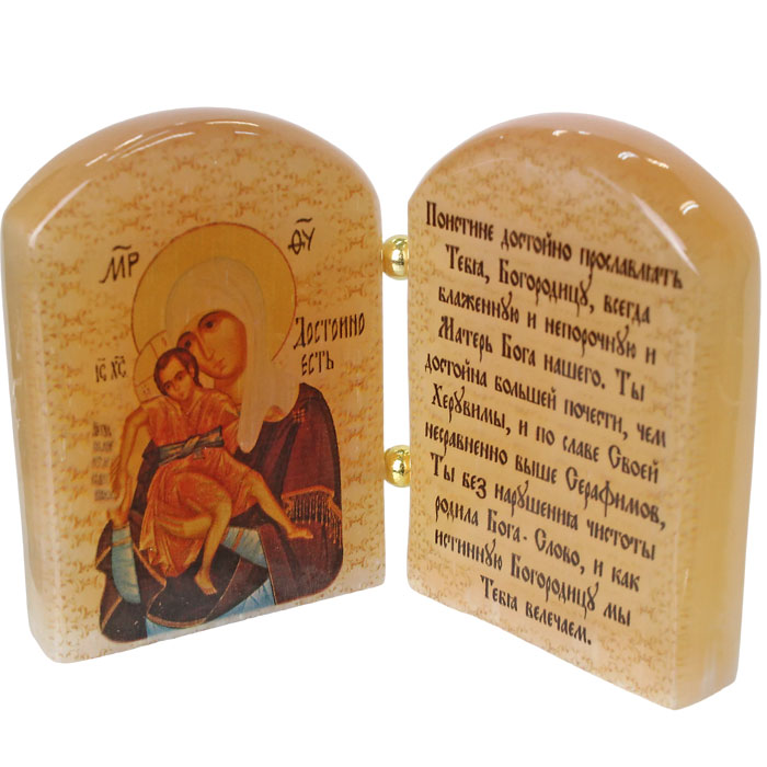 Достойно Есть, икона двойная из селенита (6,5 х 9 см)