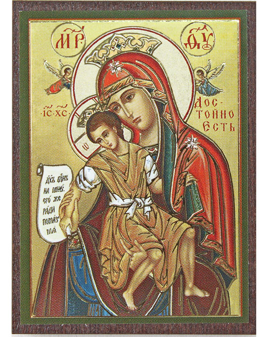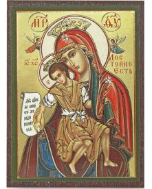 Икона на МДФ, выполненная в технике цветная полиграфия с золотым тиснением.