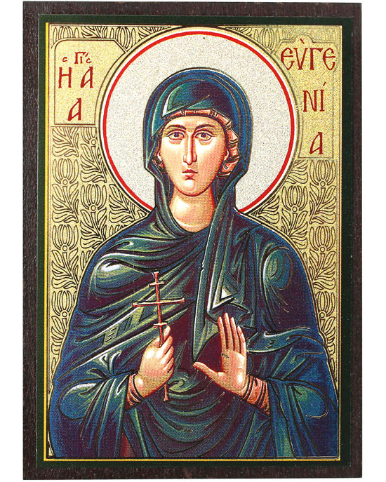 Евгения Римская икона на МДФ (6,3 х 9 см)