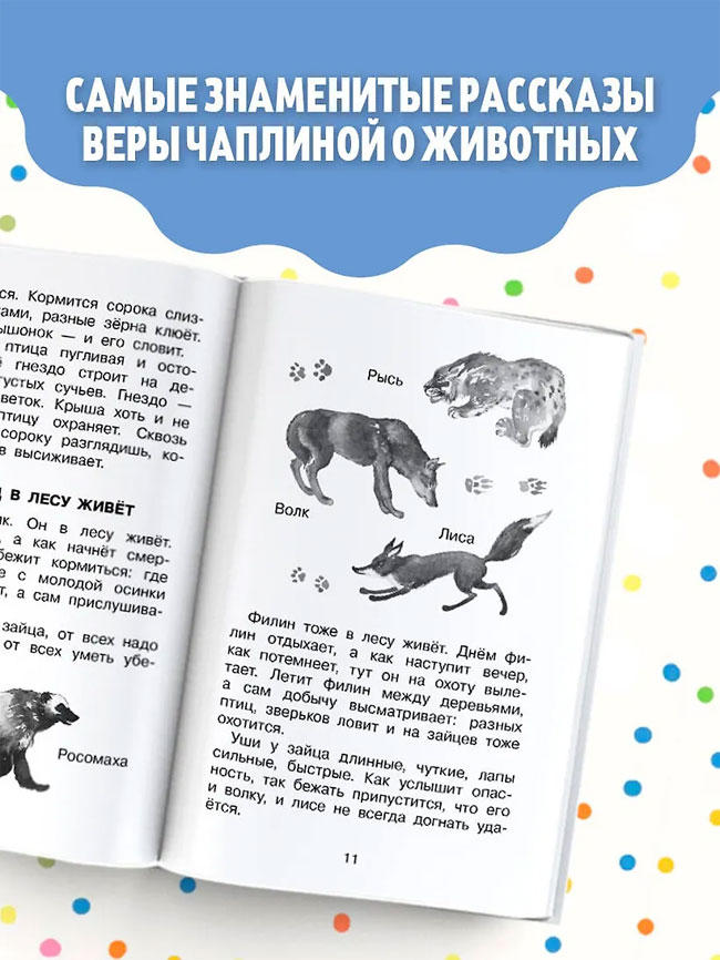 В сборник вошли одни из самых знаменитых рассказов Веры Чаплиной о животных: «Фомка — белый медвежонок» и «Кинули» о медвежонке и львице, которыми занималась писательница, а также цикл «Птицы под нашим окном» и другие произведения.