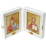 Такие футляры можно использовать для венчания, выбрав понравившиеся иконы самостоятельно. Футляр имеет подвижные створки, за счет которых иконы в сложенном виде сохраняют компактные размеры. Также футляр защищает иконы от внешних воздействий.
