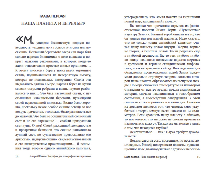 Наверное, ни одна из наук, изучаемых в школе, не разочаровывает так сильно, как география. Ученики ожидают увлекательных рассказов о путешествиях. Потому что географы только и делают, что путешествуют. А где путешествия, там приключения... Как же без приключений? Автор сразу же и со всей присущей ему прямотой хочет предупредить читателей, что эта книга совершенно не годится для сдачи экзаменов по географии. И Главным Географом Современности после ее прочтения стать невозможно. У книги несколько другие задачи — подружить читателей с географией, помочь разобраться в премудростях этой науки, научить смотреть на нашу планету глазами знающего человека. ≪Ноль занудства, максимум интереса! ≫, вот наш лозунг!