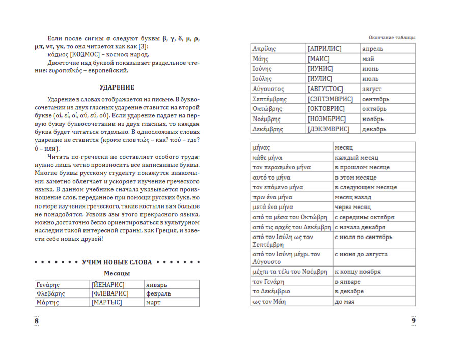 В данном самоучителе вы найдете все самое необходимое для того, чтобы освоить начальный уровень греческого языка: основы грамматики, базовую лексику, разговорные фразы, правила чтения и произношения. Грамматические темы чередуются с лексическими, что способствует развитию речевых навыков. Вы научитесь рассказывать о себе и знакомых, сможете проконсультироваться с врачом, а также обсудить любимую книгу или фильм. В каждом из 35 уроков есть упражнения для успешного закрепления пройденной темы, ответы на которые расположены в конце книги. Небольшие страноведческие вставки помогут узнать больше о культуре Греции. Материал в пособии изложен максимально понятно и доступно и сопровождается большим количеством таблиц.