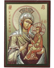 Икона на МДФ, выполненная в технике цветная полиграфия с золотым тиснением.